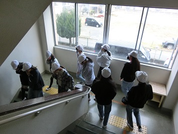 実際の工場の様子をオンラインで見たり,工場内で注意していることを聞いたりしました。