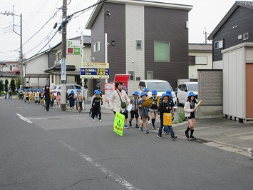会が終わると見守り隊の方々は,いつものように児童に声をかけながら一緒に下校してくださいました。