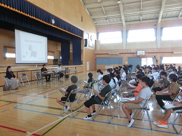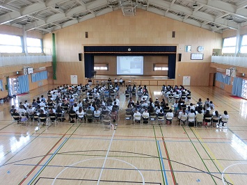 修学旅行の日程や,持ち物,活動内容などについて学級担任が説明しました。