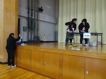 大会運営に当たる本校保護者と市P連担当 チームワークに感動しました。