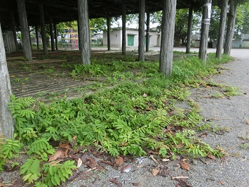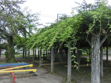 藤棚の板の部分を見てみると,こちらもツルが地面をはうように伸びており,強い生命力を感じます。