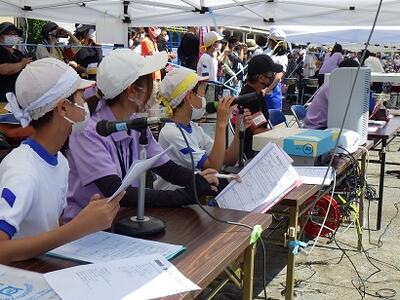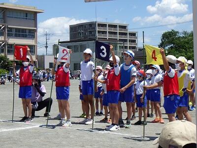 6年生と一部の5年生は,自分が出場する競技の合間に係の仕事を行っていました。仕事は,出発係や審判係,記録係,放送係などたくさんあり,暑い中でも一生懸命働く姿がとてもかっこよかったです。運動会がスムーズに進められたのもみなさんのおかげです。
