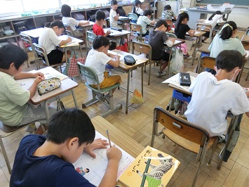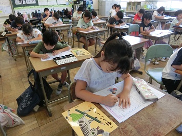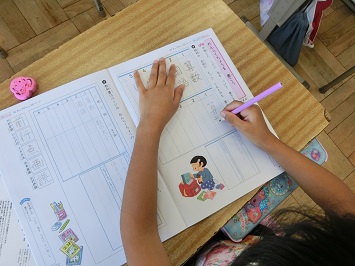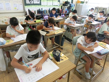 集中して練習していて素晴らしかったです。これからも姿勢に気を付けて丁寧に書きましょう。