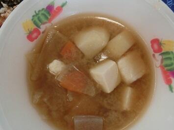 日本ではだんごをそなえてお月見をする風習(ふうしゅう)があります。ここには秋の実りに感謝する意味もこめられています。ちなみに献立のけんちん汁に入っているサトイモは地元の農家さんがつくったものです。そして,もちろんお米も同じです。なお,ご飯のお米は先週から新米になっています。