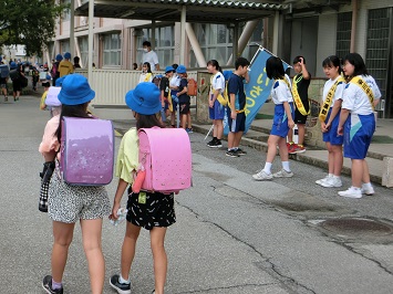 中学生からの元気な挨拶に応えるように本校の児童も笑顔であいさつを返していました。