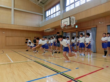 10月に行われる宇都宮市小学生陸上競技大会に向けて9月18日より練習が始まりました。初日は,正午過ぎより気温が高くなったことから,児童の健康面を考慮して校庭での練習を取り止め,体育館で行いました。