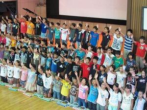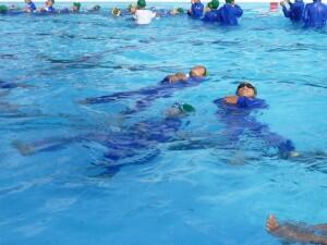 子どもたちは,服が水を吸ったときの,予想以上の動きづらさを体験を通して学びました。