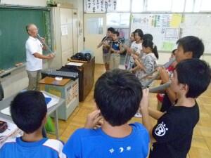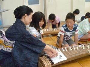6年生を対象として日本の文化を学ぶ「ふれあい文化教室」では,琴と尺八の体験を行いました。