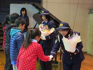 日頃からお世話になっている交通指導員の大垣雅男さん,根元鈴子さん,石塚玲子さんに感謝の気持ちを伝えるため,感謝の会を開きました。
