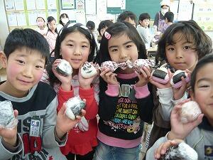 子どもたちは,自分で作ったおにぎりをおいしそうに食べていました。