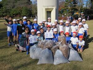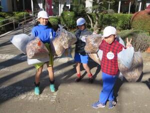 クリーン作戦では,栃木県総合運動公園の落ち葉を拾いました。