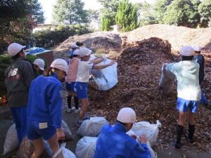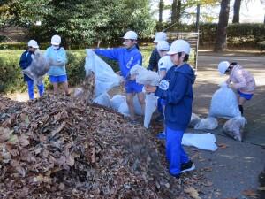 腐葉土になる葉と,なりにくいイチョウの葉を分けながら,たくさん集めました。