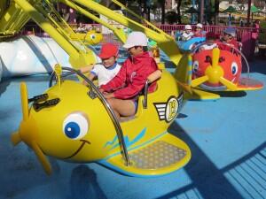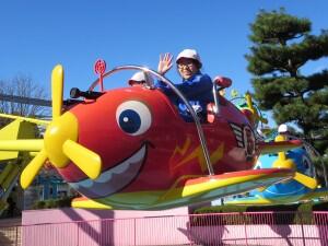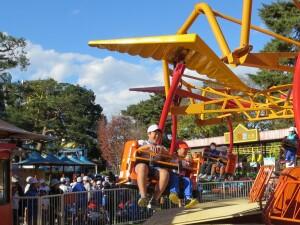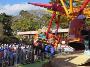 縦割り班活動では,栃の木ファミリーランドで乗り物に乗ったり,芝生で遊んだりしました。