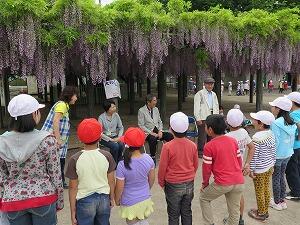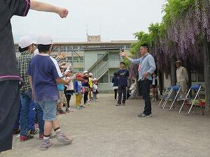 今年も,大藤の花が美しく咲く中,全校生によるフジ集会が行われました。