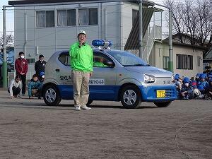 子どもたちの安全を守るために,新たに青色パトカーでの巡回が始まったことにについてお話をお聞きしました。