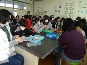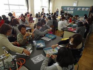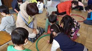 地域のボランティアの方々に来ていただき,1年生の子どもたちのおじいさん,おばあさんたちと昔の遊び道具の使い方を教えていただきました。