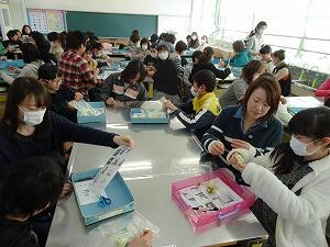 今回は,親子でコサージュ作りを行いました。