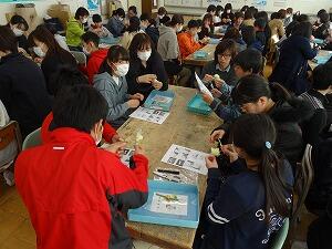 おはじきやお手玉,メンコ,けん玉,べいごまなど,様々な遊び道具の遊び方を教えていただきながら,昔遊びを楽しみました。