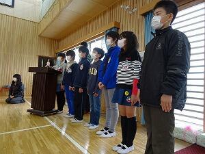 これまで,6年生が中心となって活動してきた,委員会活動,縦割り班活動,登校班,清掃,旗揚げ当番の活動を,5年生に引き継ぐための式を行いました。