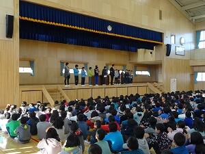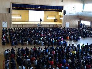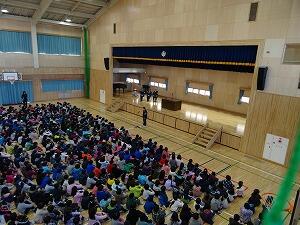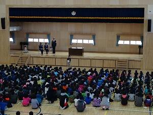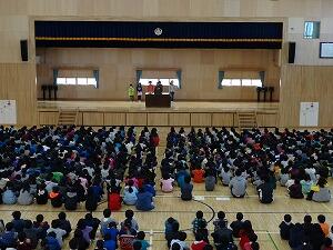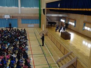 年が明けて初めての全校朝会が行われました。