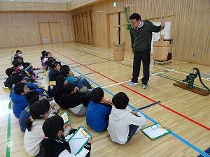 県立博物館の職員の方々に来ていただき,昔の道具体験の出前授業をしていただきました。