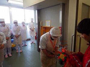 また,調理員の方々へ手作りのメダルを渡し,日頃の感謝の気持ちを示しました。