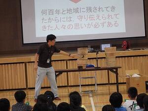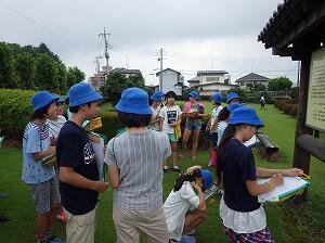 教育委員会から先生をお呼びして,古墳や歴史的な文化財について体育館でお話を聞いたあと,実際に古墳へ向かい,自分の足で歩き回って古墳を調べました。
