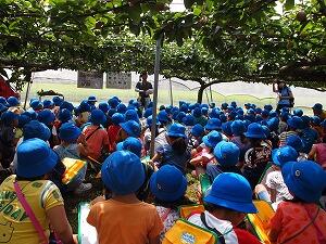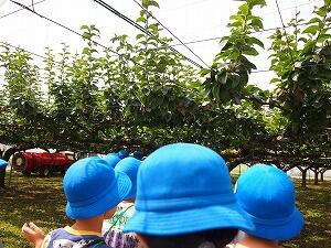 3学年では,社会科の学習で梨園で働いている方の様子を学習するために安納梨園に行きました。大きくなる前の梨の実物を見せていただいたり,育て方やどのように売っているかなどもわかりやすく説明していただきました。