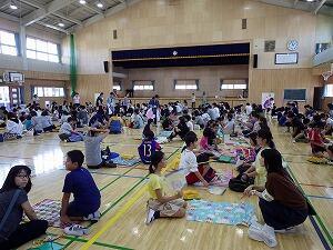 全校児童が体育館に集まり,音楽集会が行われました。