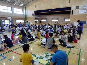 親子でうちわに絵をかき,そのあとには作ったうちわでゲームなどをして楽しみました。
