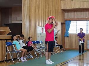リズム遊びから始まり,最後には全身を使って「勇気100%」を楽しく歌いました。