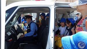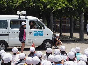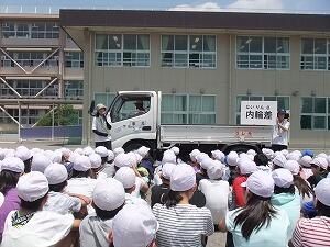 車からの死角の危険性,内輪差,車の合図など,道路での安全にかかわることを教えていただきました。