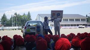 生活安心課の方をお呼びして,下学年・上学年に分かれての交通安全教室が行われました。