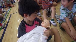 命はどうやって生まれてくるのか,赤ちゃんの時はどうだったかなどを教えてもらいました。恐る恐る,そっと赤ちゃんの人形を抱く子どもたちの姿が見られました。