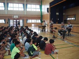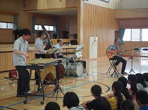 6年生では,ジャズの演奏家の方たちをお招きしてふれあい文化教室を行いました。