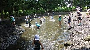 夏という季節でしか見られない生き物や植物を見たり,水遊びをしたりして,楽しく活動しました。