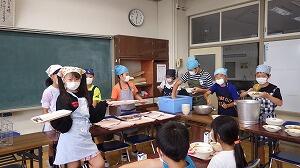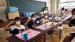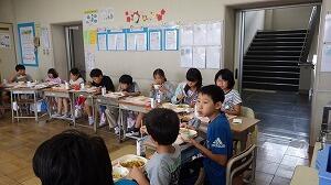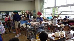 いつもと違って,1~6年生がいる給食にドキドキしながらも,違う学年と食べて楽しそうにしていました。
