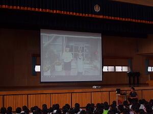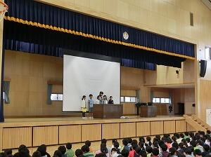 本日の児童朝会では,栽培委員会の発表が行われました。