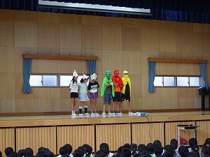 栽培委員会の活動内容や,みんなに気を付けてほしいことを劇を交えてわかりやすく説明していました。