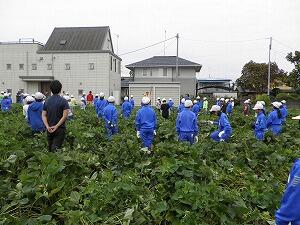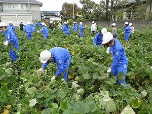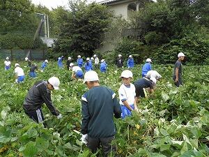 本日は,6学年がサツマイモ畑の除草を行いました。