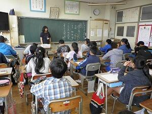 本日は,姿川中学校の先生にお来しいただいて6年生に向けて授業を行いました。