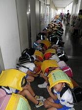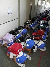 児童たちは正しい避難の姿勢を学び,教員は迅速な指示,連絡の方法を確認しました。