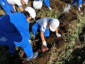 農園体験活動として,春に苗を植えたサツマイモの収穫を行いました。
