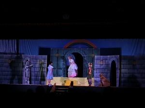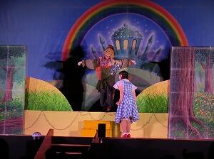 「オズの魔法使い」の劇でした。ステージで演じる人のせりふやきれいな照明などに子どもたちは夢中になって見ていました。