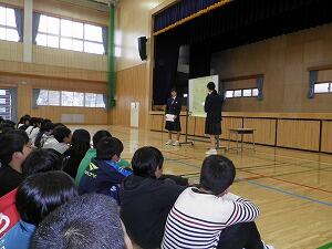 芸術鑑賞で,「夢団」という劇団をお呼びして,演劇鑑賞会をしました。