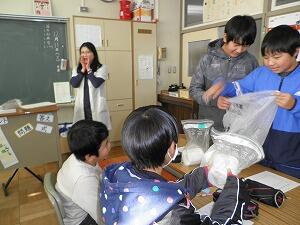 姿川中学校の家庭科担当の金橋先生が本校6年生の全クラスで,授業を行ってくださいました。