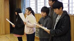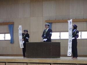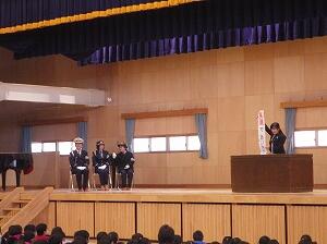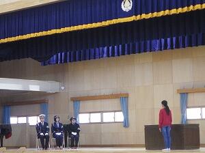 いつも児童の登校を見守ってくださっている交通指導員の大垣さん,根元さん,石塚さんに向けて,感謝の会が開かれました。
