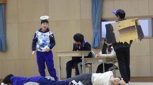風邪や感染症の予防のためには,どのようなことをすればよいのか劇や三択問題をつくって発表をしました。