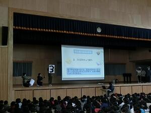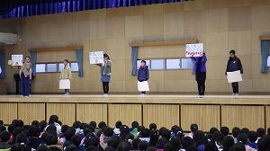 本日の全校朝会では,保健委員会による児童集会が行われました。