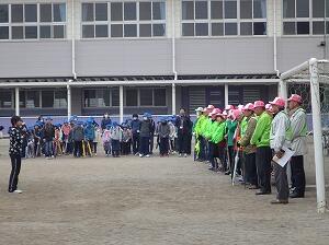 いつも子どもたちの登下校の安全を見守ってくださる,地域見守り隊のボランティアの皆様に向けて,感謝の会を行いました。